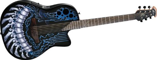 Ovation’s r&d team collaborated with guns n’ roses guitarist dj ashba to fine-tune every sonic and visual aspect of the four limited edition models in the demented collection. with its spruce top, high-performance scalloped x-bracing, and mid-depth cutaway composite body, the chrome bone sounds as impressive as it looks. ovation’s slimline pickup has individual sensors for each string, and the op-4bt preamp offers +/-12 db control over the bass, midrange, and treble frequencies for great tonal flexibility. the chrome bone’s edgy graphics are inspired by the elaborate tattoo that covers ashba’s back.