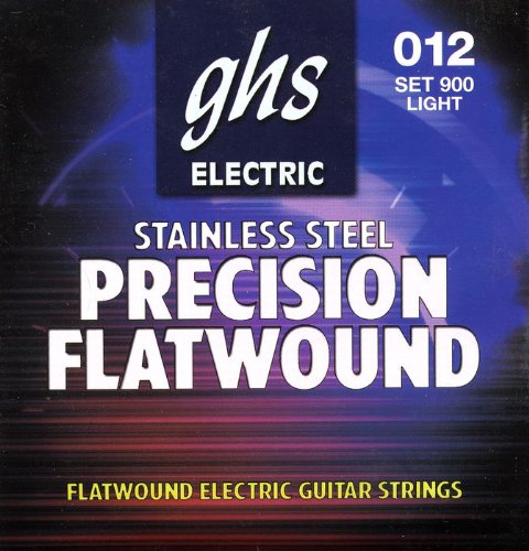 GHS Electric Guitar Set Flatwound Light Gauge 12-50 Flatwound Sets are made of Polished Stainless Steel Ribbon Cover wire for a smooth feel and warm mellow tone. The choice of string for Jazz guitar