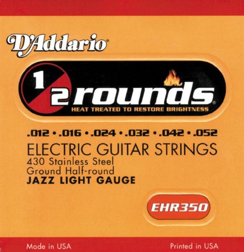 Gauges: 12-16-24-32-42-52. D'Addario EHR350 Jazz Light Electric Guitar Strings feature a hex steel core and color-coded ball ends. D'Addario is the world's largest manufacturer of strings for musical instruments. Many top guitarists won't play any other brand. Regardless of your playing style, D'Addario has a set of strings that's right for your electric guitar.