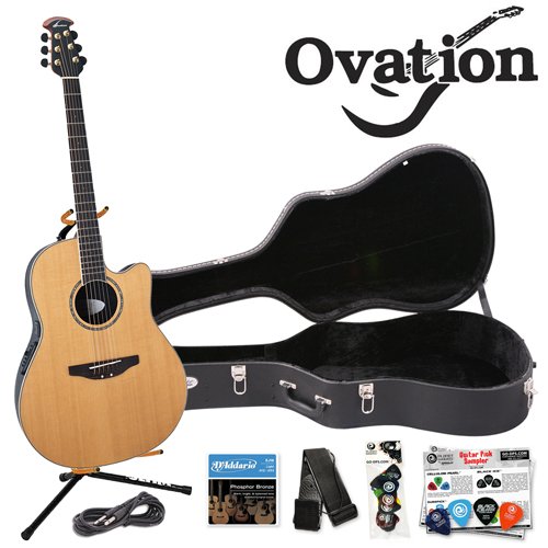 Ovation Celebrity Contour Natural Cedar CC29S-4C Acoustic/Electric Guitar Kit - Includes: Guitar Cable, Strap, D'Addario Strings, Planet Waves/GO-DPS 16 Pick Sampler (#PW-SAMPLER), Ultra Stand & Hard Case. Review